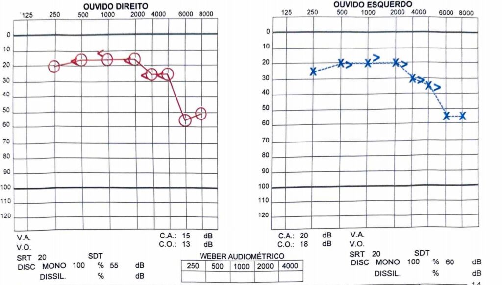 Paciente refere que escuta música no seu ouvido direito há cerca de dez meses.